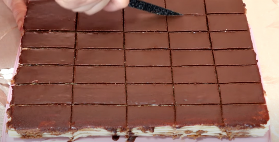 Sada dolazi najukusniji deo, a to je slaganje torte. Prvo treba rasporediti deo fila po rozen kori, prekriti drugom korom i pritisnuti rukama kako bi se sastojci ujednačili. Zatim naneti drugi sloj fila na tortu i nastaviti sa slaganjem, sve dok se ne utroši sav materijal. Poslednji sloj torte treba da bude kora, koju je potrebno pritisnuti nekim težim predmetom, kako bi se sastojci dobro sjedinili.