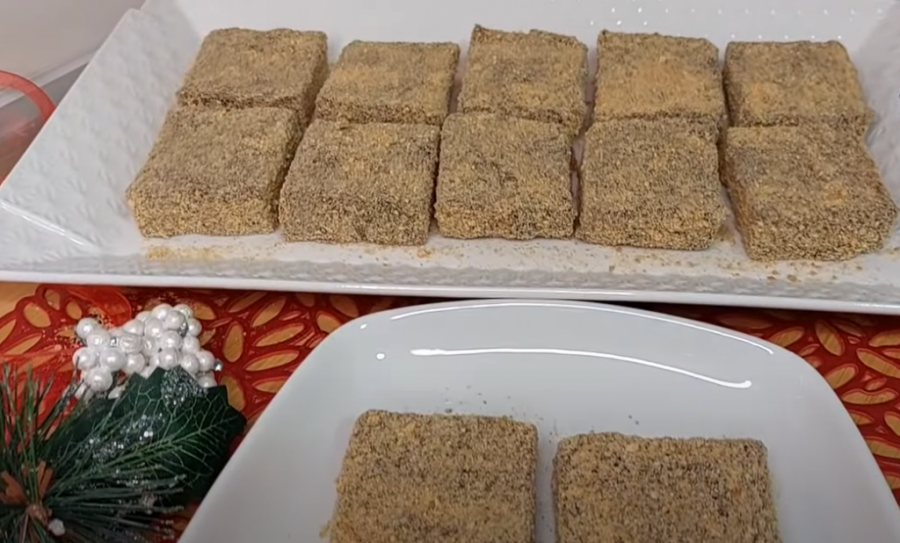 U mleko sipajte šećer i vanilin šećer. Dodajte kakao prah i griz. Sjedinite sve ručnom mutilicom i stavite da se kuva. Mešajte dok se smesa ne zgusne. Dodajte 50 grama čokolade za kuvanje. Sjedinite sa tri kašike mlevenog keksa. Tepsiju dimenzija 30x20 cm pospite malo vodom. Potom je prospite. U tepsiju odmah sipati vrelu smesu. Poravnajte i pokrijte providnom folijom. To se radi sve dok se ne stvori korica. Kolač ohladiti na sobnoj temperaturi, potom prebaciti u frižider. Izvadite ga nakon 4 - 5 hlađenja. Isecite kolač u plehu. Kolač sa svih strana uvaljati u mleveni keks.