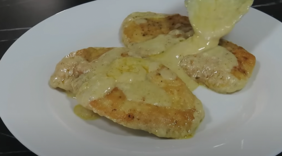 Kada se zakuvalo dodajte 150 mililitara pavlake za kuvanje. Po želji u smesu sipajte so i biber. Kačkavalj narendajte i dodajte u smesu. Po želji dodajte 10 grama to je oko kašika parmezana. Kada se smesa zgusnula, stavite piletinu u tiganj koji je na ringli. Kuvajte tako još pet minuta.