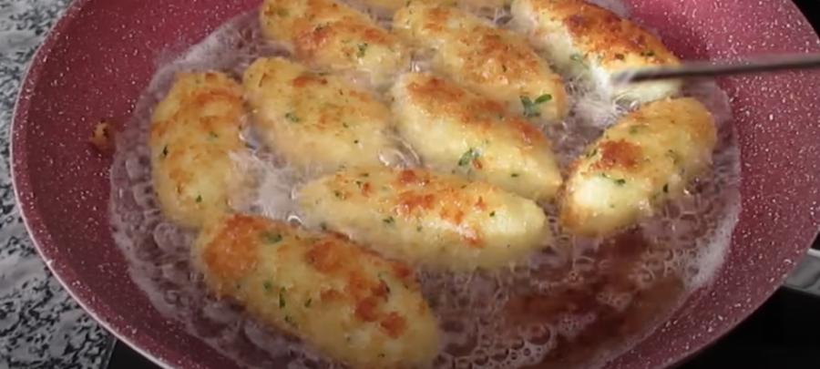 Jedno jaje umutite viljuškom ili ručnom mutilicom. Testo valjajte u jaje, a onda u prezle. Zagrejte ulje, a onda ubacujte testo.