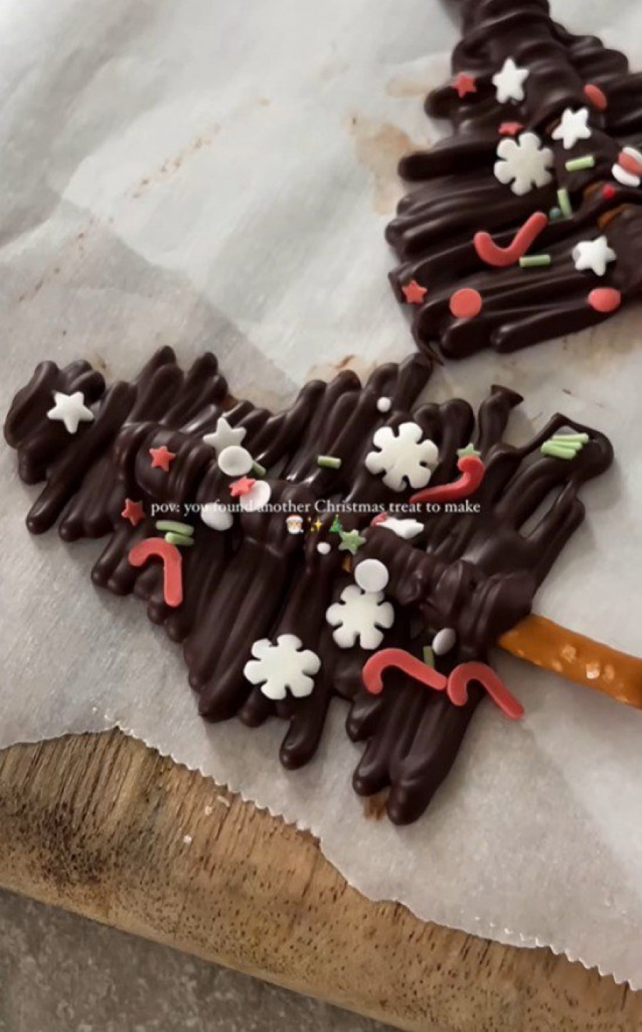 Još jedna ideja krajnje jednostavna i zanimljiva. Uzmite štapiće odnosno grisine. Preko u obliku jelke stavite rastopljenu čokoladu. Dok je sve toplo pospite šarene mrvice preko.