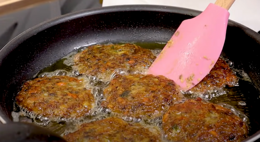Nauljite ruke i oblikujte pljeskavice. Kada se ulje zagrejalo, pržite. Kada porumene, okrenite ih na drugu stranu, a onda ih ocedite od viška ulja na ubrusu.