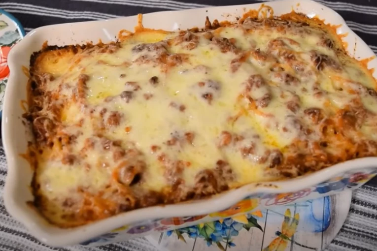 Svakodnevne obaveze i stres oko posla nekada čine da nemamo dovoljno vremena da pripremimo obroke koji zahtevaju da se bude pored šporeta duži period. Baš suprotno od toga je ovaj recept koji će oduševiti sve ukućane. Zapravo ovo je slično špagetama bolonjezama, samo se na kraju zapeku.