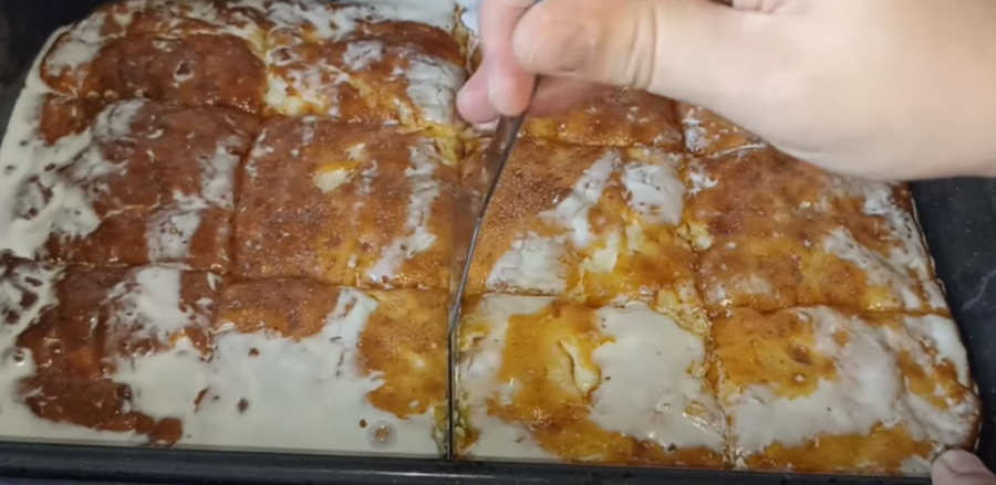 Jaja razbijete u jednu posudu, a onda ih varjačom umutite koliko možete, potom dodajete kajmak. Umesto kajmaka možete koristiti i kiselu pavlaku. Promešajte kajmak i jaja, a onda dodajte mleko. Kada ste sjedinili sipajte kukuruzno brašno, jedan prašak za pecivo, pšenični griz i sve promešajte ponovo. Potom dodajte sir onoliko koliko želite. U receptu ima oko 300 grama sira, kada sjedinite dodajte jednu i po kašičicu soli. Ako dodajete ulje dodajte četiri do pet kašika, ne više, a može i bez ulja. Rernu uključite na 200 stepeni da se zagreje. Nauljite pleh u kom će se pita peći, prespite smesu, poravnajte i pecite na istoj temperaturi oko 20 minuta. Kada se ispeče prelijete je sa pavlakom za kuvanje. Isecite je na kocke, pa je vratite u rernu na pet minuta, ali je važno da bude ugašena.