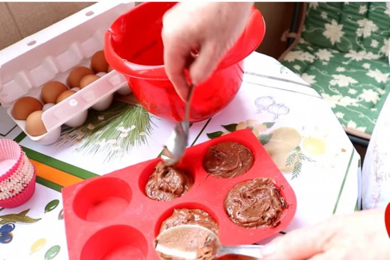 Priprema: Umutiti jaja sa šećerom, dodati brašno, rastopljen maslac, čokoladu i sve dobro izjednačiti. Peći u mafini kalupima 10-15 min na 200 stepeni C. Služiti uz kuglu sladoleda.
