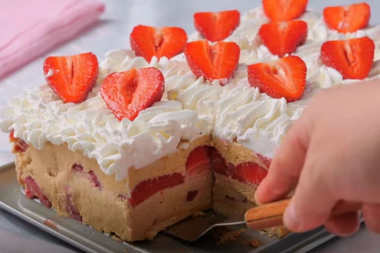 KOLAČ SA JAGODAMA I MLEVENIM KEKSOM SPREMAN ZA 15 MINUTA: Ovo je NAJBOLJI SPOJ sastojaka, toliko je kremasto i fino