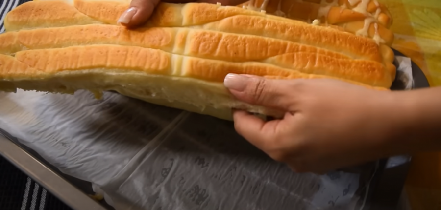 U činiji pomežajte suvi kavasac, kašiku šećera i 300 mililitara toplog mleka. Dodajte dve varjače brašna, promešajte i ostavite tako pet minuta, a onda dodajte 100 mililitara ulja. Dodajte polovinu ostatka brašna i so. Sjedinjujte testo varjačom, a onda i rukama. Pospite radnu površinu i prebacite testo, pa ponovo mesite, dodajte ostatak brašna, i mesite dok se ne formirate loptu. Loptu pokirijte i ostavite da naraste oko 20 minuta. Nauljite radnu površinu, a onda na njoj isecice testo oblikovano u veknu, na lotpice težine 80 grama. Formirajte loptice i pokrijte ih čistom krpom oko pet minuta. Nauljite oklagiju pa razvucite tanko testo, a onda oblikujte testo u prut.