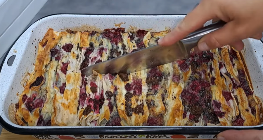 Kolač koji se pravi od gotovih kora i malina osvojiće sva vaša čula. U pitanju je lepeza kolač koji ne zahteva trud. Nakon što sastojke sjedinite iste pospete preko gotovih kora, a da biste ovu poslasticu obogatili potrebno je da dodate smrznuto voće po izboru i sitno seckanu čokoladu.