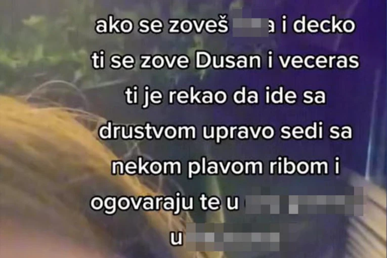 - Ako ti se dečko zove Dušan i rekao je da večeras ide sa društvom, upravo sedi sa nekom plavom ribom i ogovaraju te u Rajićevoj - napisala je ona u videu na TikTok - u.