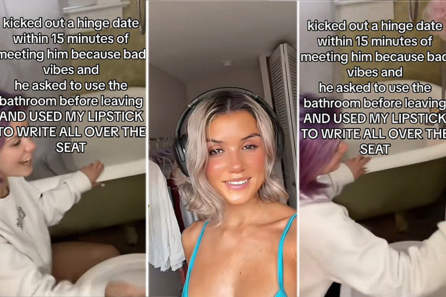 Ubrzo, shvatila je da nisu "jedno za drugo" i zamolila ga je da ode kući. On se nije bunio, ali je zamolio da pre nego što ode koristi njeno kupatilo, a onda joj se osvetio. Devojka se prisetila kako je tekao njihov razgovor: