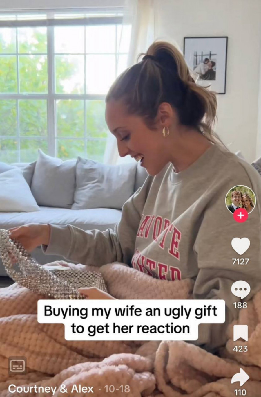 Naime, Aleks je odlučio da iznenadi svoju suprugu Kortni i kupio joj torbu. Odmah je ocenio da joj se torba neće svideti. U pitanju je torbica sa malom ručkom od sljokica, u tu su bili i srebrni sirkoni. Izgleda skoro providno.