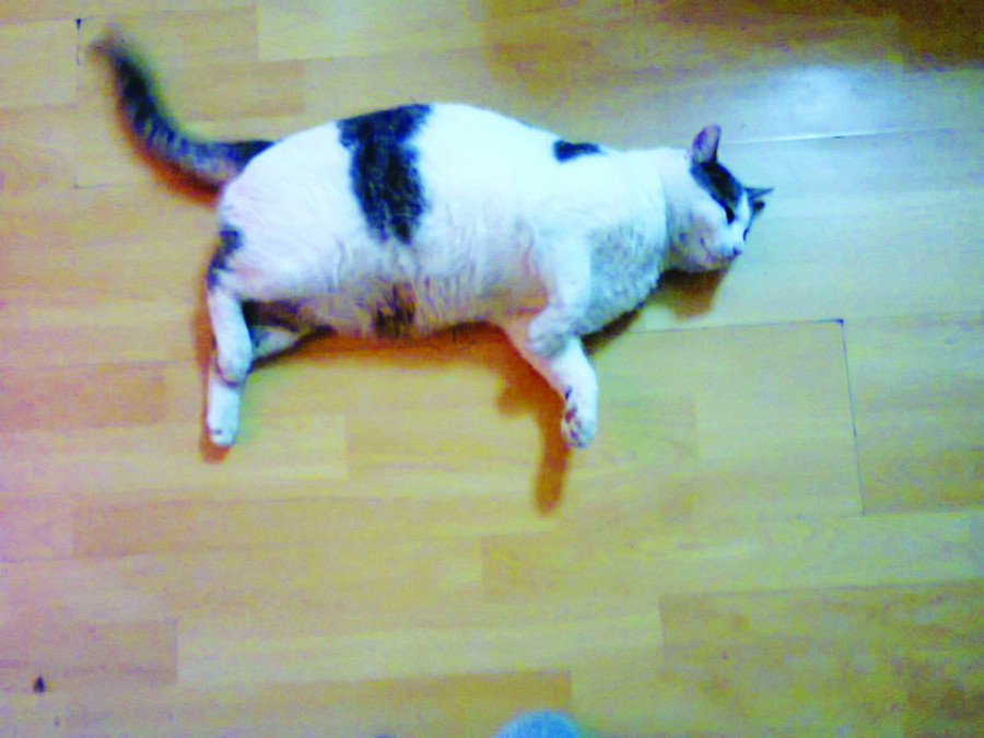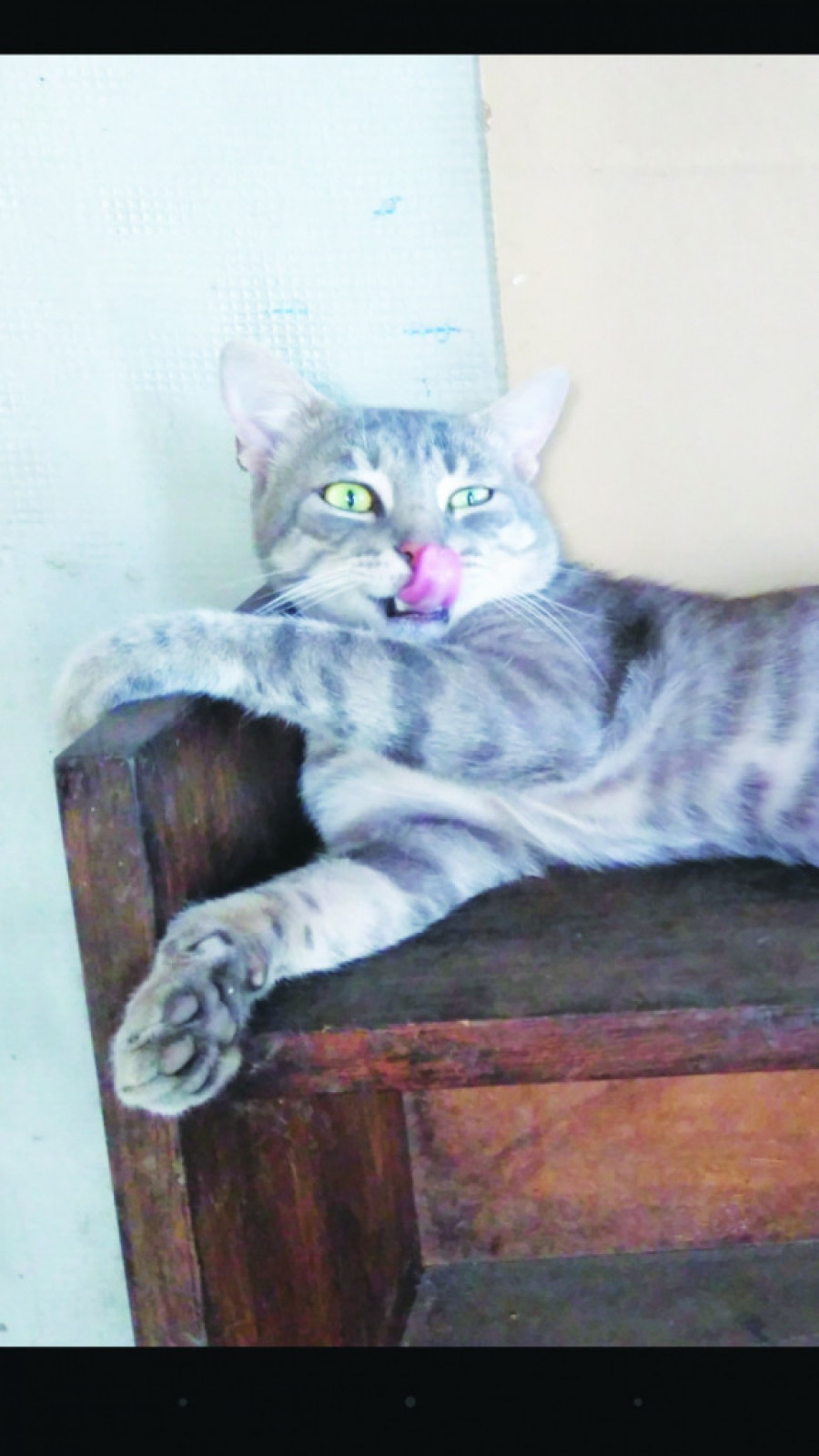Miško, razigrani mačak, izlezava se dok uporno čeka svoj deo ručka