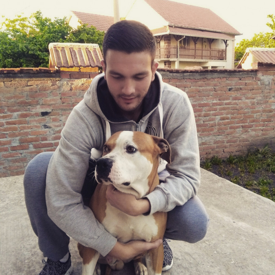 Aron, američki staford, star 3 godine. Obožava da se igra s ljudima i samo bi se mazio