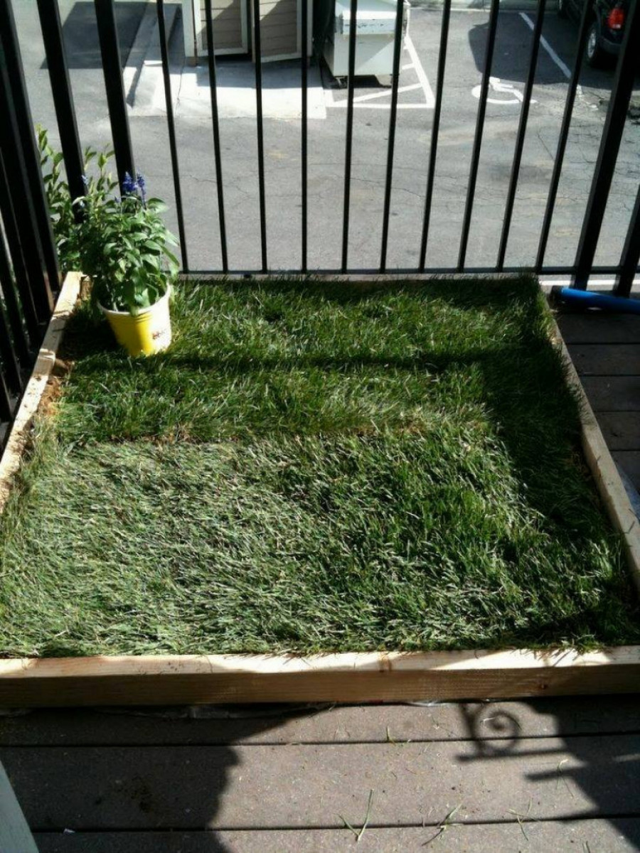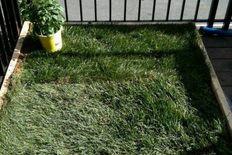 Mini bašta na terasi kao toalet za kuce