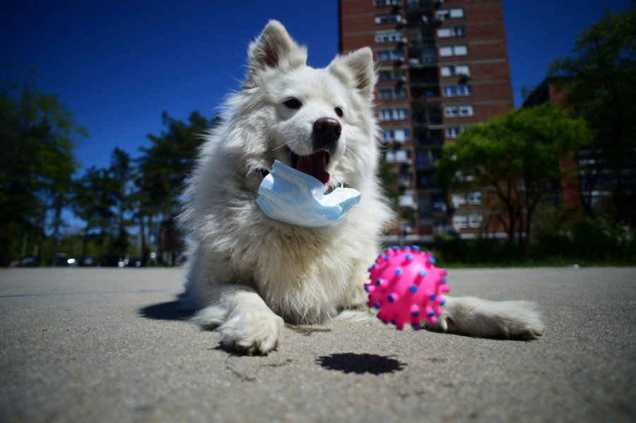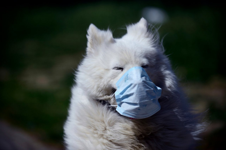 Psima naravno zaštitne maske ne trebaju, ali kao "sezonski" modni detalj jednom psu kojeg smo slikali stoji preslatko.