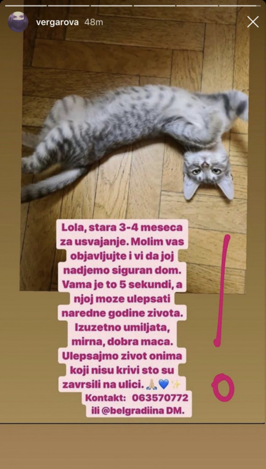 Ukoliko je neko zainteresovan da udomi Lolu, neka se javi na broj telefona 063/570772 ili na Instagram nalog @belgradiina