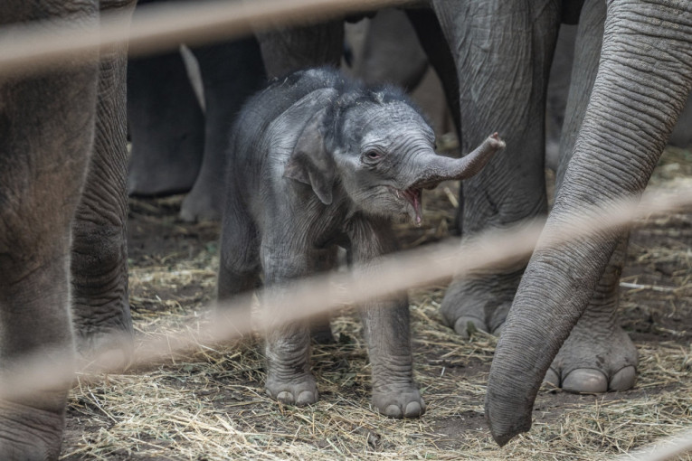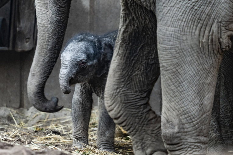 Malo i tek rođeno slonče danas je viđeno po prvi put, nakon što je juče došlo na svet.