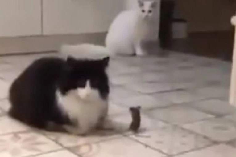 Na momente deluje kao da miš izaziva mačke svojim vratolomijama, ali one nisu previše teritorijalne, pa ga ne žele da ga uhvate i pojedu. Ovaj video je nasmejao korisnike Tvitera koji nisu mogli da veruju šta vide.