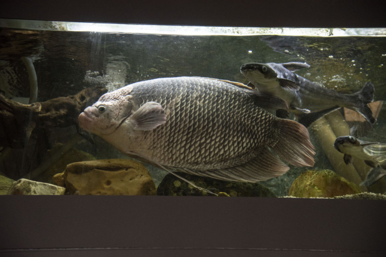 U akvarijumu od šest metara praćaka se azijski gurami težak više od 10 kilograma, koji je i najveća akvarijumska riba na našim prostorima, star više od 12 godina.