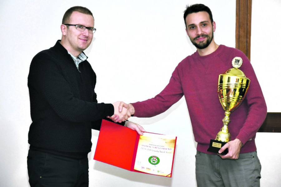 Milošu Đuričiću, osnivaču udruženja BETA nagradu je predala Sofija Kujundžić iz organizacije Animal rescue Serbia, koja je prošle godine dobila ovo priznanje.