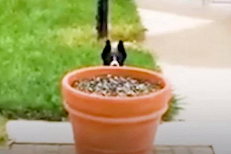 Ona je želela da produži svoj boravak napolju tako što se sakrila iza saksije, i provirila s vremena na vreme da "proveri situaciju", odnosno uveri se da je uspela da umakne svom gazdi.