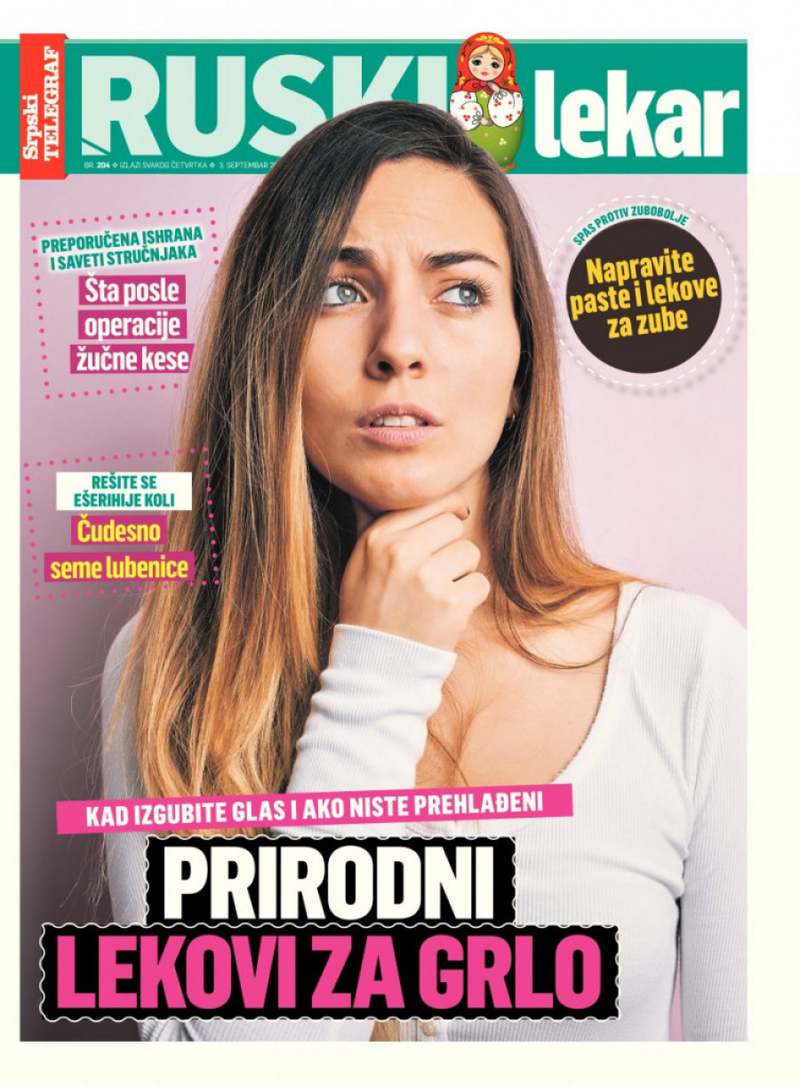 Uz štampano izdanje Srpskog telegrafa našim dragim čitaocima poklanjamo magazin "Ruski lekar" u kome možete pronaći brojne korisne informacije o zdravlju i prirodnom lečenju.