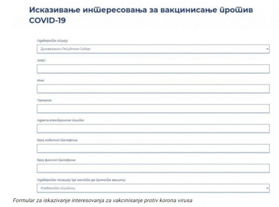 Građanima Srbije je putem sajta imunizacija.euprava.gov.rs omogućeno da pokažu interesovanje za vakcinaciju protiv kovida 19.