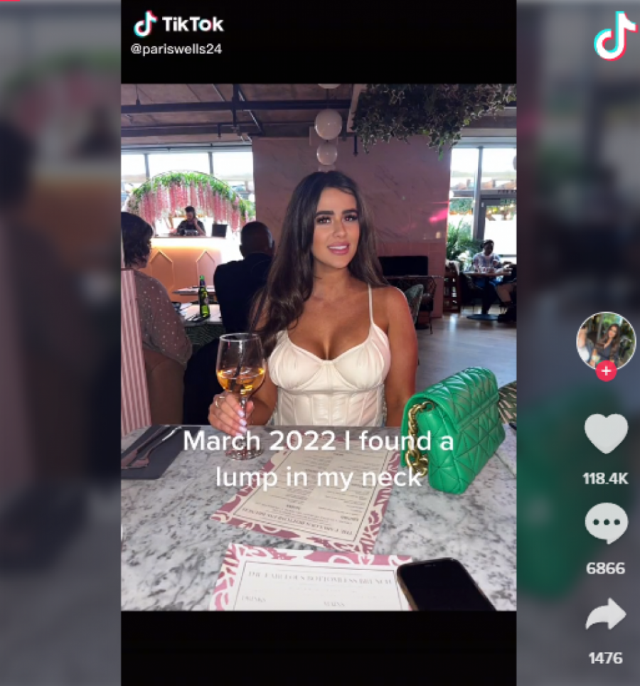 Paris Vels (28) je u martu pronašla kvržicu na prednjem delu vrata, pa je odmah otišla u bolnicu kao bi proverila o čemu se radi. Ona je takođe osećala svrab kože i gubitak težine, što ju je dodatno zabrinulo.