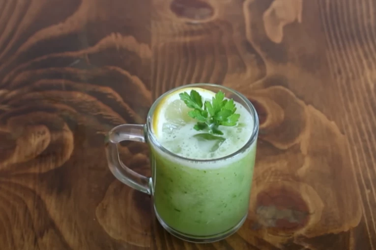 U blender stavite celer, punu šolju peršuna, limunov sok i jednu čašu vodu. Blendajte, pa smesu sipajte u bokal u koji ste već sipali još pet čaša vode. Sve dobro promešajte.