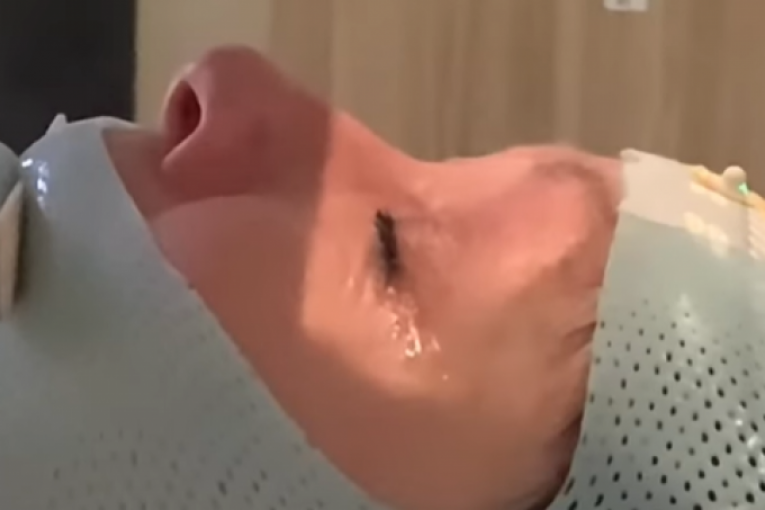 Objavila je dva snimka sa samog procesa radijacije, a na jednoj nosi masku na licu koja je pričvršćena za površinu na kojoj leži. Glumici u jednom trenu počnu da teku suze.