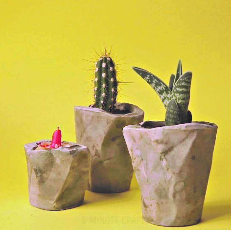 Papirnu čašu namažite vazelinom, zatim sipajte u nju cement, pa ubacite još jednu manju papirnu čašu. Nakon 24 sata izvadite manju čašu, zatim polako isecite i odvojte veći čašu od cementa. Na kraju išmirglajte vazu od cementa i u nju stavite cveće ili napravite svećnjak.