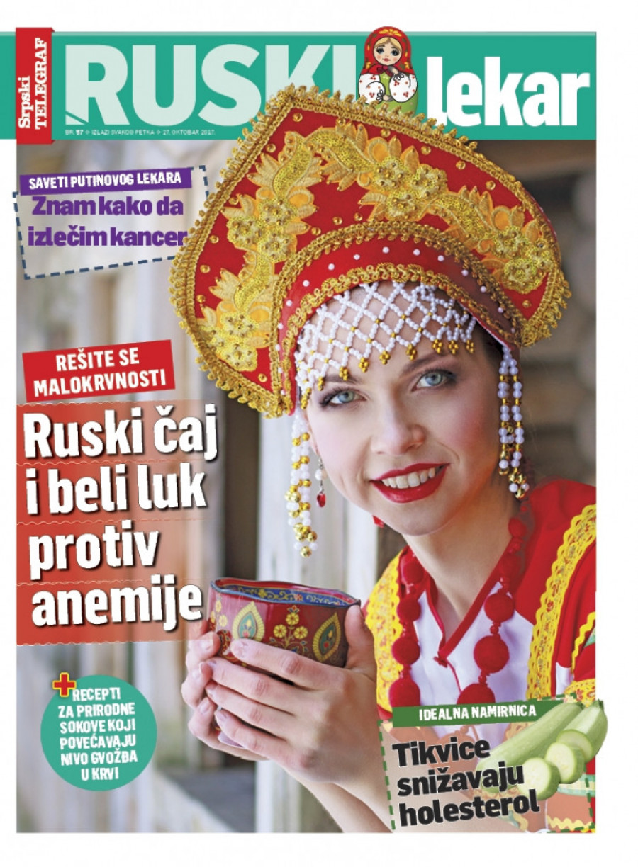 Foto: Srpski telegrafU izdanju koje izlazi u petak 27. oktobra saznaćete kako da rešite problem malokrvnosti odnosno anemije pomoću ruskog čaja i belog luka.