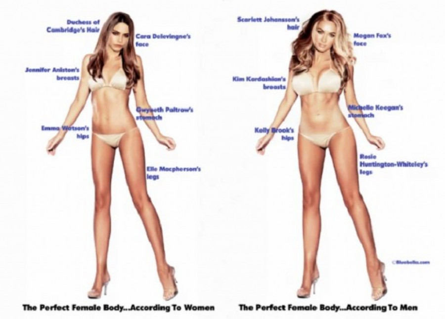 Ako pitate gospodu, idealna žena treba da ima kosu kao Skarlet Johanson, lice Megan Foks, grudi Kim Kardašijan, struk Mišel Kigan, kukove Keli Bruk i noge Rouz Hanington Vajtli.