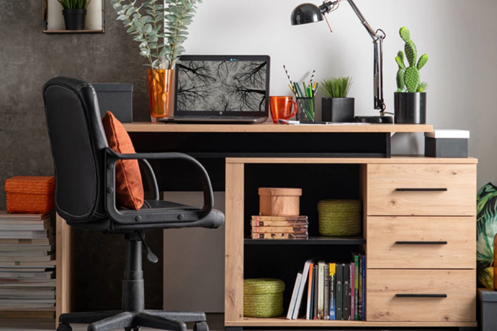 Kompjuter sto u spavaćoj sobi pružiće im prostor za učenje, a u slobodno vreme monitor mogu da koriste i kao TV ekran. Koristan komad nameštaja za radni kutak je onaj koji pruža više mogućnosti, a pravi primer je kompjuter sto ARHIMED, u kombinaciji dekora artisan hrasta i crnog drveta. Može se koristiti i kao pomoćni stočić, dodatna radna površina, a ukoliko je postavljen u blizini kreveta, čak i kao noćni ormarić. Takođe, odličan je izbor za starije đake kojima je potreban računar za časove i domaće zadatke, a podesivi element koji se rotira pružiće dodatni prostor za odlaganje i dati novi izgled prostoru.