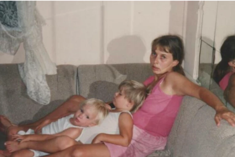 Prvog februara 1992. godine pobegla sam iz nasilnog braka. Ova slika nastala je noć pre nego što sam pobegla. Ne znam kako sam preživela tu noć. Muž je fotografisao, rekavši mi da je ovo poslednja noć koju ću provesti u životu, pa je želeo da sinovi imaju neku uspomenu na majku. Stariji je imao 4, mlađi 2 godine.