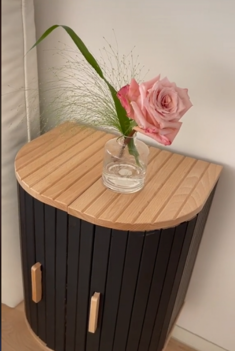 TikTokerka Linda izabrala je crnu boju, što se pokazalo kao pun pogodak! Nakon što je ofarbala kutiju, skinula je trake. Da bi ovo bila jedna funkcionalna komoda, kupila je i "nogice" za nju koje je takođe ofarbala u crno i zalepila ih.
