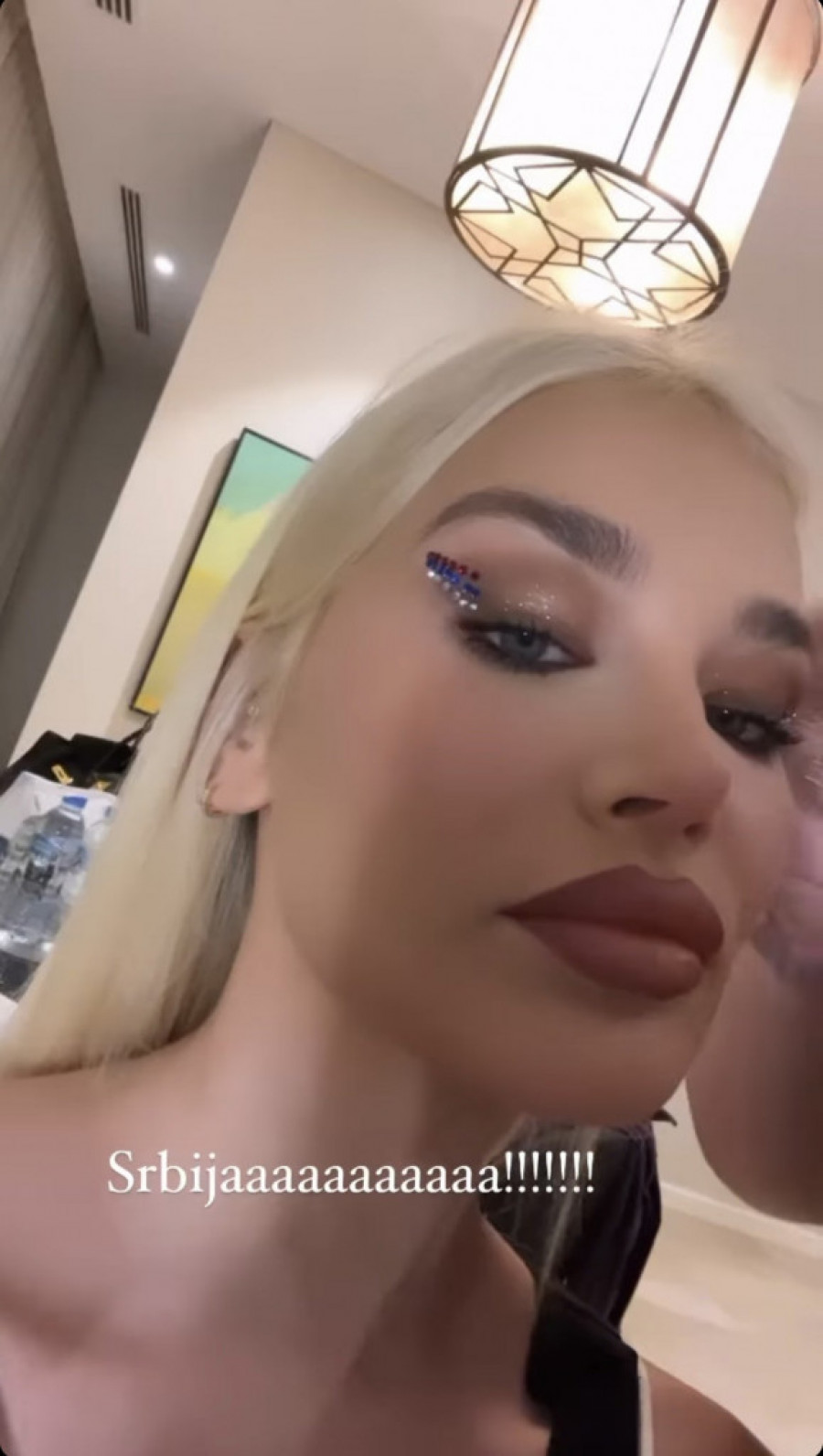 Sofija Milošević je naša manekenka i dizajnerka, a u Katar je otputovala kako bi bodrila svog partnera, srpskog reprezentativca Luku Jovića. Za sinoćnu utakmicu izabrala je poseban stil šminkanja i na lice stavila šljokice u bojama zastave Srbije. Kasnije je to isto uradila i na obrazima, gde joj je šminker nacrtao tri srca u crvenoj, plavoj i beloj boji. Da podsetimo, ona je izazvala pravi bum kada je pred utakmicu pozirala sa bivšom srpskom snajkom Adrianom Limom.