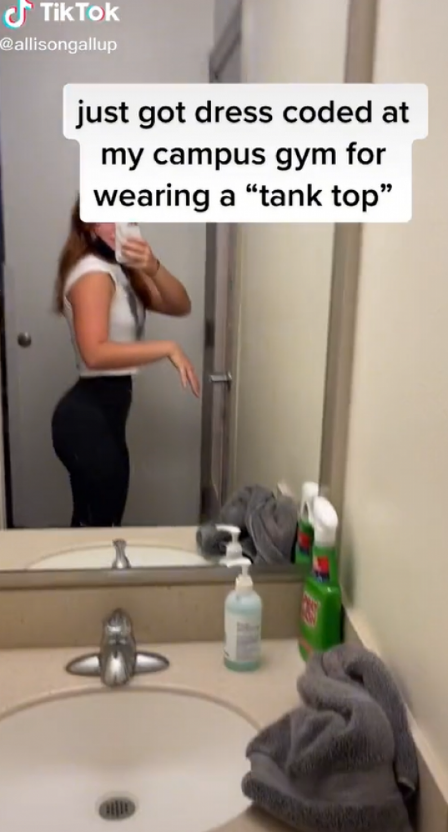 Alison je obukla belu majicu bez rukava i duge helanke za svoju školsku sportsku dvoranu, ali je dobila upozorenje - pokazala je svoju odeću na TikTok - u gde su gledaoci ovu politiku nazvali "smešnom".