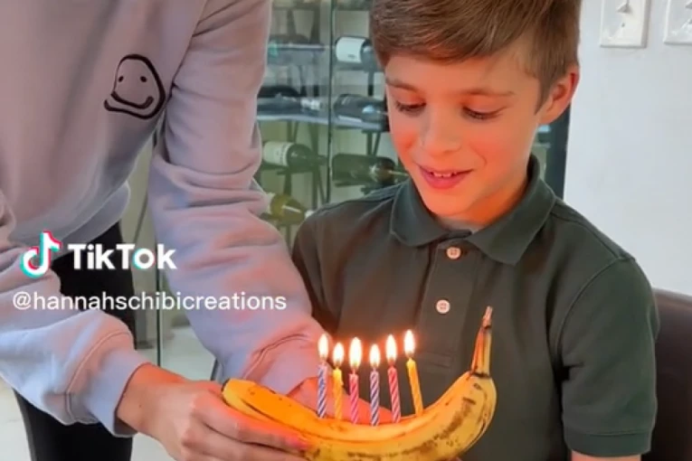 Žena koja se na TikTok - u predstavlja kao Hana Šibi objavila je video koji je osvojio srca čak 22 miliona ljudi. Na njemu se vidi kako plavokosi dečak duva svećice na improvizovanoj totrti od banane. Odnosno, žena je stavila svećice u koru banane i dala mu da ih oduva povodom njegovog rođendana. Lepo je videti što je dečak toliko skroman, da se uopšte nije na neki način "uvredio" što nije dobio neku drugu vrstu torte, već samo voće koje mu je verovatno dostupno skoro svaki dan.