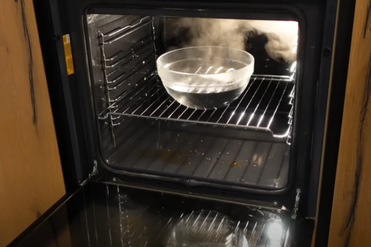 Prvo sve izvadite iz rerne. Prokuvajte vodu, i sipajte oko 1, 5 litar u činiju koju ćete staviti u rernu. U vrelu vodu dodajte jednu kašiku amonijaka. Inače, to je dobar proizvod za čišćenje i pravo učinkovito rešenje za mrlje i prljavštine.