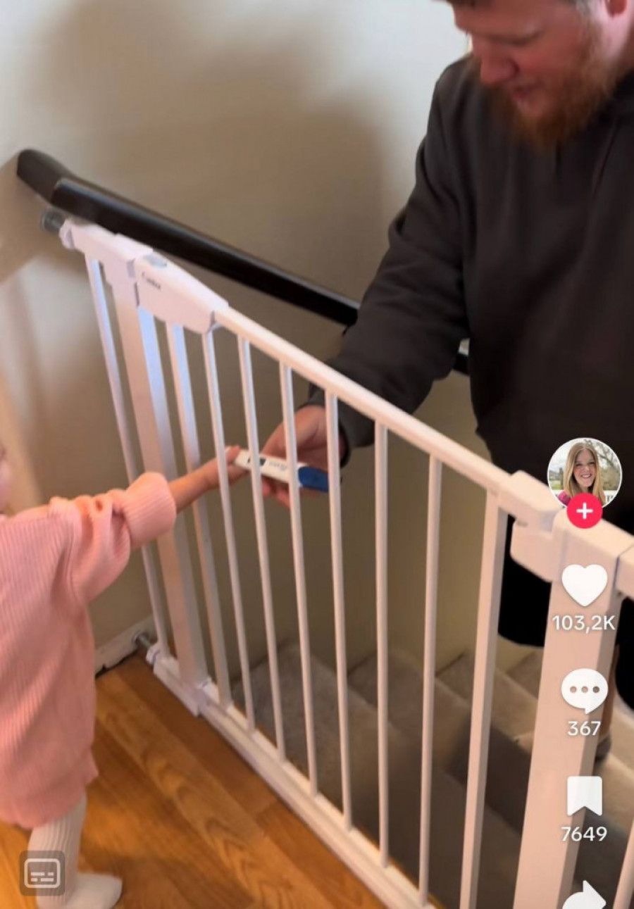 Naime, pošto ona ima devojčicu koja sada ima 13 meseci, uradila je test za trudnoću koji je pokazao pozitivno, odnosno da je ponovo trudna. Potom je taj test dala svojoj devojčici da odnese njenom suprugu. Malena devojčica prilazi ogradi u dnevnom boravku i pokazuje ocu da dođe do nje. Otac je pomislio da se pozdravlja sa njim i šalje joj poljubac.