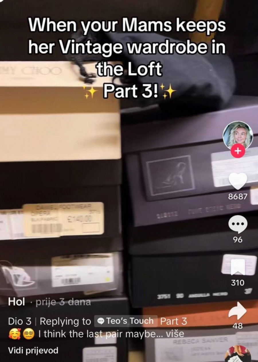Jedna devojka koja se prestavlja kao Hol na TikTok - u živi san mnogobrojnih devojaka. Naime, njena majka krije čitavo bogatstvo na tavanu. Ona obožava cipele i sandale zbog čega na tavanu drži sve odvojeno u kutijama. Ako mislite da je u pitanju bilo kakva obuća, ne! Na tavanu poseduje ekskluzivne marke i modele koje sigurno sada ne možete pronaći.