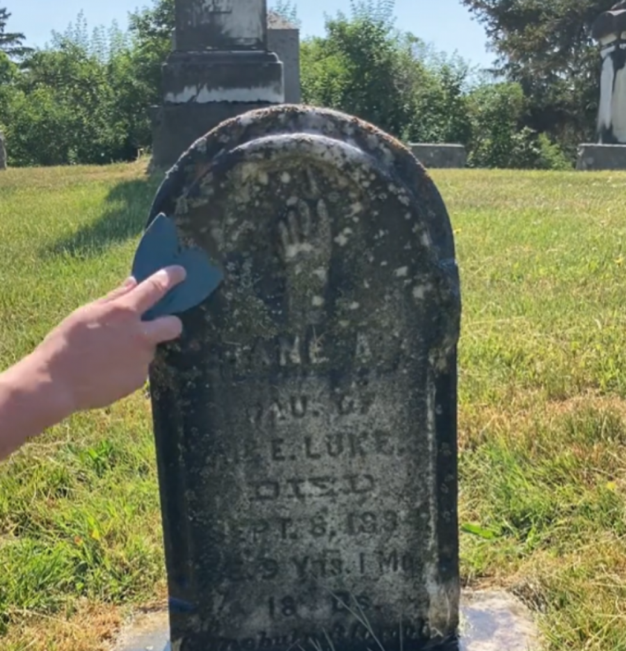 Sada kao veteran čišćenja nadgrobnih spomenika, rekla je da dolazi potpuno opremljena s raznim alatima, uključujući i onaj za topljenje, čišćenje, vodu, prskalice za baštu i razne četke.