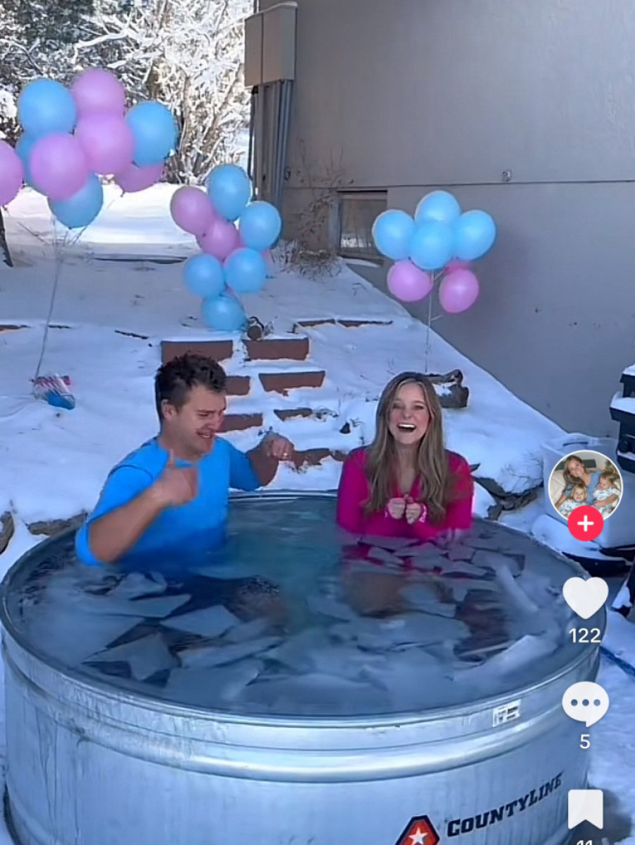 "Ledena kraljica" kako je sebe nazvala, ovoga puta je u zaleđenom bazenu imala društvo. Sa njom je bio suprug i oni su zajedno otkrili pol bebe u pomenutom bazenu. Led koji se stvorio od hladnoće razbili su tegom, a onda je bazenu odjednom počela da se pojavljuje roze boja. To je bio signal da će dobiti devojčicu.