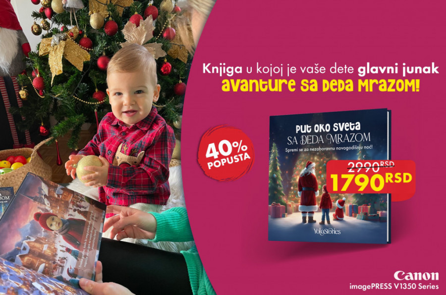 Za to putovanje vašim mališanima nije potreban kofer, topla jakna i sanke. Ne trebaju im ni šal, rukavice ili kapa. Potrebno je samo da ih ušuškate u toplinu svog doma i da zajedno sa njima zaronite u Yolo Stories - magičnu knjigu za decu, koja donosi niz uzbudljivih zimskih pustolovina sa Deda Mrazom i Sneškom Belićem. A posebna čar ove magične knjige je ta što je glavni junak upravo vaše dete.