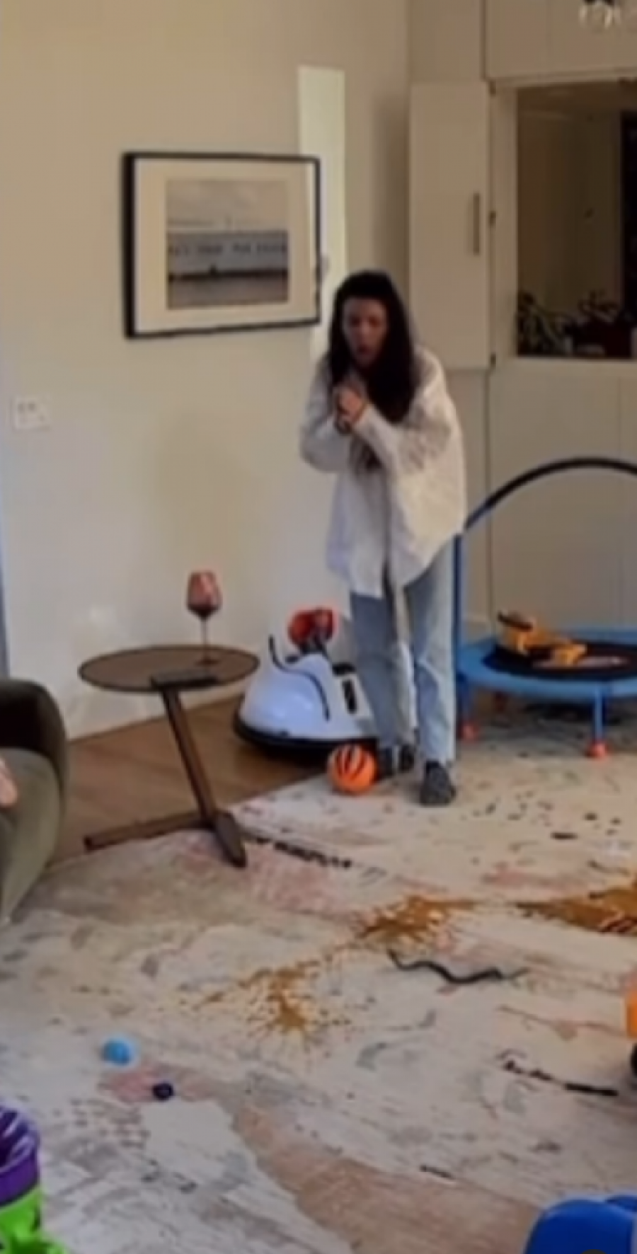 Ipak, na stolu je pored čaše sa vinom stajalo još jedno piće. Čim je mama sklonila čašu sa pićem, dečak je u besu uzeo čašu sa sokom i bacio je na beli tepih. Tečnost se rasula svuda po prostoru, a mama je samo šokirano gledala.