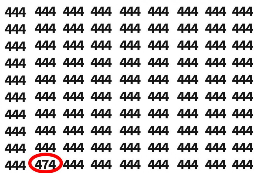 Brzo uočavanje različitih znakova ili brojeva je odlika posebnih. Ovoga puta reč je o uočavanju drugačijeg broja koji pokazuje da nije reč samo o ponuđenim četvorkama. Ova mozgalica je prava "poslastica" za sve one koji vole da se zabave. Pripremljen je običan beli papir sa četvorkama koje su poređene u redovima, odnosno odvojene tri po tri.