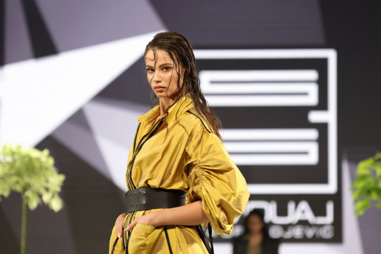 Duge i kratke haljine veselih boja, optočene šljokicama, sakoi asimetričnog dizajna, ekscentrična odela za žene i muškarce, samo su deo prikazane kolekcije. Na pisti su se, u ulozi modela, pojavili i Draga Jovanović i Džordži.