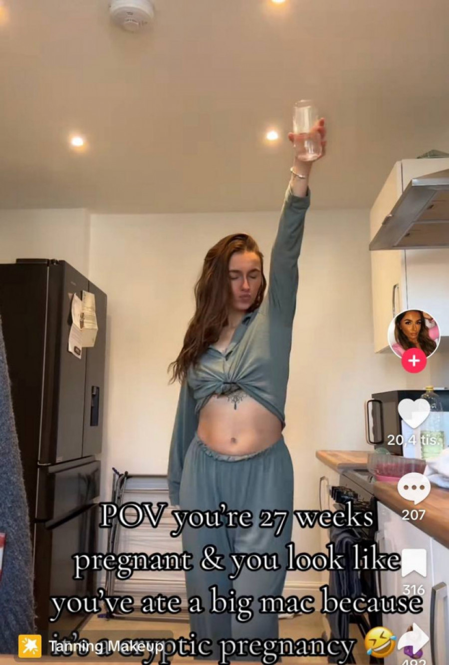 Lili Somerton, 21-godišnjakinja iz King's Lynna u Norfolku, doživela je šok kada je saznala da je već 24 nedelje trudna, iako nije imala vidljiv stomak niti bilo kakve simptome trudnoće. Iako je već imala jedno dete, Lili nije ništa primetila dok nije osetila kretanje u stomaku dok je ležala. Nakon pozitivnog testa, otišla je na pregled gde su joj lekari potvrdili trudnoću. Iako su joj rekli da možda neće razviti veliki stomak tokom preostalog dela trudnoće, njen dečak, koji se očekuje u julu 2024. godine, je zdrav. Foto: Printscreen/TikTok