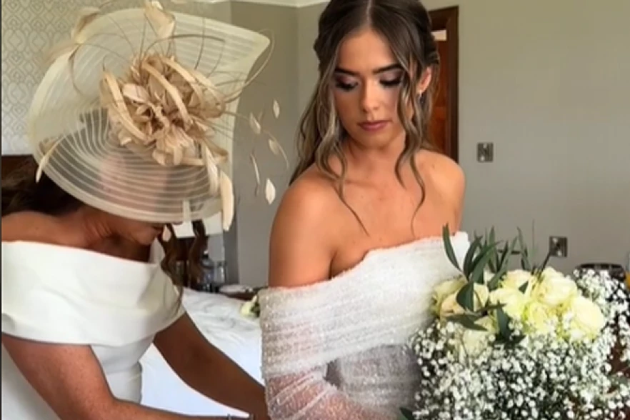 U snimku koji je podelila na TikToku (@eringinariley), Erin i njena mama mogu se videti kako oblače bele haljine bez bretela dok se spremaju na jutro njenog velikog dana. Dok joj mama pomaže da zatvori korset na haljini, Erin kaže: